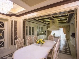 خلاف ذلك ، يتم تشكيل الجزء الداخلي من المنزل على طراز الإمبراطورية. ينصب التركيز هنا على الجدية والنعمة المرئية للتكوين..