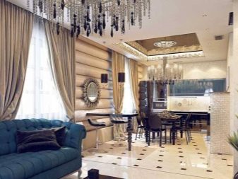 يجب أن يكون الأثاث مفصلاً وضخمًا. تشير جميع العناصر الموجودة في مثل هذا الجزء الداخلي حرفيًا إلى الجودة والإعجاب. نرحب بالستائر الثقيلة ذات الأقمشة السميكة.