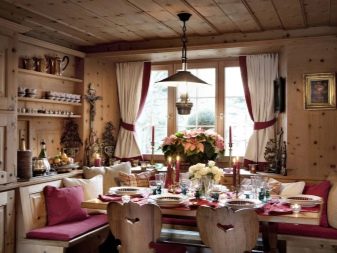 التركيز الشديد على النغمات الداكنة لا يستحق كل هذا العناء. هذا يمكن أن يؤدي إلى نظرة القرون الوسطى بشكل مفرط. يُنصح عشاق الخشب الخام الخشن باختيار جذوع الأشجار ذات العقد والميزات الطبيعية الأخرى. ينصح بوضع الألواح المطلية على الأرضية. تخلق الملمس والعقد الرشيقة لونًا ، ولكنها قد تؤدي أيضًا إلى إزعاج خطير..