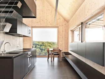 إذا كانت المساكن الصغيرة لا تناسبك ، فيمكنك اختيار مفهوم آخر – منزل يصل حجم غرفة المعيشة فيه إلى 30 مترًا مربعًا تقريبًا. م صحيح ، الحمام فقط حوالي 2 متر مربع. م ، ومساحة الغرفة الفنية 3.6 متر مربع. م سوف يحب الناس المشغولون ترتيب المكتب. يوجد أيضًا حمام أكبر ، وتبلغ مساحة غرفة المعيشة 16.3 مترًا مربعًا. سيسعد المطبخ أيضًا أصحاب المنازل ويوفر لهم جميع الوظائف اللازمة..