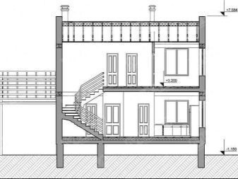 في كثير من الحالات ، من الضروري النظر في تخطيطات المنازل الحديثة التي تبلغ مساحتها 200 متر مربع. م وأكثر. أحد هذه الخيارات ، على الرغم من عدم تجهيزه بمرآب ، لا يزال عمليًا ومريحًا. يوجد تراسين ، مساحتها مختلفة مرتين تقريبًا. الشرفة كبيرة جدًا للاستخدام المريح. مساحة غرفة المعيشة والمطبخ والحمام كبيرة جدًا وتلبي تمامًا أي احتياجات للسكان.