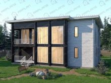 قد تبدو المنازل الريفية البسيطة ذات النوافذ البانورامية شيئًا كهذا. يكاد لا يتم فصل الشرفة بصريًا عن الطابق الأول. تتناسب بساطة الخطوط والزوايا بشكل مثالي مع التركيبة المبسطة.