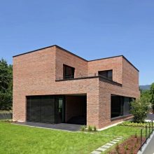 مبنى آخر بسيط يبدو أكثر جمالا بسبب استخدام الألوان الخشبية الداكنة والدافئة على الواجهة. يمكن أيضًا اعتبار الشرفة المغطاة ميزة مميزة..