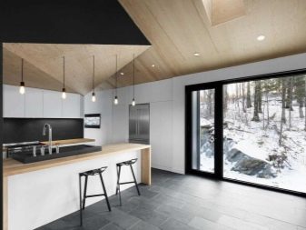 يجدر التأكيد على الحاجة إلى تثبيت نوافذ كبيرة. فقط الزجاج البانورامي يلبي تمامًا الشرائع الاسكندنافية.