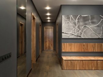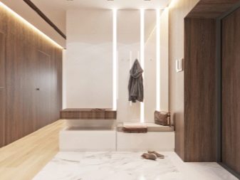 في الردهة ، تهدف البساطة أيضًا إلى الحفاظ على أقصى مساحة خالية وبساطة عامة للتكوين. يجب أيضًا مراعاة الإضاءة. بدلاً من خزانة الملابس ، غالبًا ما يضعون: