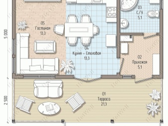 قد تختلف المنازل الصغيرة الأخرى اختلافًا كبيرًا عن العينة التي تم تحليلها للتو. يتضمن أحد الحلول استخدام شرفة تبلغ مساحتها 21.3 مترًا مربعًا. م يتم وضع مجموعة أثاث مدروسة عليه لتوفير الراحة. يزيد حجم غرفة تناول الطعام في المطبخ عن 13 مترًا مربعًا. م. بالإضافة إلى ذلك: