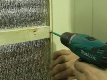 - نعلق العزل نفسه باستخدام دباسة أثاث. يمكن قص الشرائط بالمقص أو بالسكين ، ويجب محاذاة الوصلات بالقرب من بعضها البعض ، ثم لصقها بشريط خاص على قاعدة من الألومنيوم..