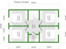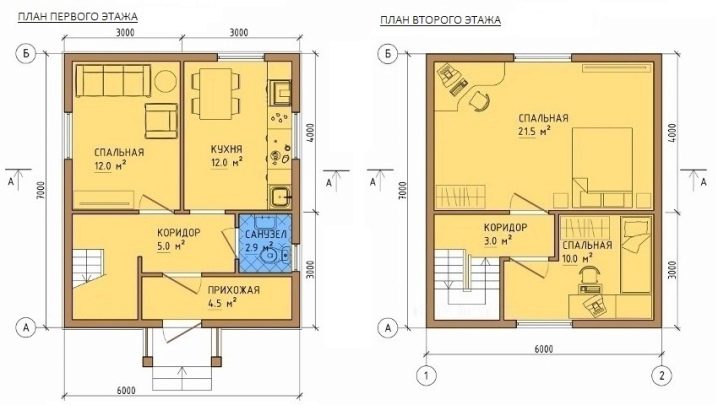 خيار آخر يتضمن ترتيب مدخل 4.5 “مربع”. من هناك يمكنك الوصول إلى الممر الذي ينتهي جانبه الأيمن بحمام. يحتوي الطابق الأول أيضًا على غرفة نوم ومطبخ. تم تسليم الطابق الثاني بالكامل إلى منطقة النوم.