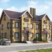 - واجهة جمالية. يجب أن يكون المظهر الخارجي للمبنى ، المكون من كتلتين متساويتين ، معكوسًا تمامًا. في الوقت نفسه ، يجب أن تعطي الواجهة انطباعًا عن هيكل متكامل من وجهة نظر العمارة. من الجانب ، يشبه الدوبلكس منزلًا واسعًا واحدًا.