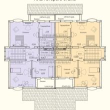 في قطاع الاقتصاد ، يتم بناء الدوبلكس ذات التصميم المريح. توجد جميع الكتل الوظيفية الرئيسية هنا ، بينما لا يوجد شيء غير ضروري. ستكون هذه المنازل حلاً جيدًا للعائلات الصغيرة بميزانية متوسطة.. تحتوي الكتل المتجاورة على شكل مستطيل بسيط ، ولكن يتم إزاحتها قليلاً بالنسبة لبعضها البعض. هذا يعطي المبنى مظهرًا أكثر أناقة..
