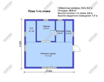 على الرغم من المساحة المحدودة ، فمن الممكن تمامًا تجهيز العديد من المباني في منزل حديقة من طابق واحد في الريف. في هذا الإصدار ، على سبيل المثال ، يتم الجمع بين المسكن والحمام. بالإضافة إلى غرفة الغسيل التي يبلغ طولها 5 أمتار ، يتم تجهيزها أيضًا بغرفة بخار متوسطة الحجم.. بالإضافة إلى ذلك ، كان هناك مكان لـ: