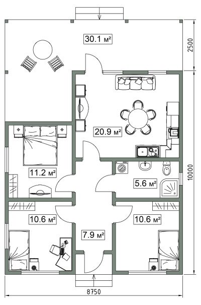 يركز نهج آخر على الاستخدام الكامل للمنزل ، وليس فقط على إجراءات الغسيل والنظافة.. يمكن أيضًا توفير علية صغيرة هنا. ستلبي غرفة النوم التي تبلغ مساحتها 9.8 مترًا مربعًا احتياجات حتى أكثر البنائين تميزًا. يمكن لغرفة المعيشة التي تبلغ مساحتها 21 مترًا أن تستوعب عددًا كبيرًا من الضيوف في نفس الوقت. يجدر أيضًا التأكيد على ترتيب الحمام والمطبخ الواسع..