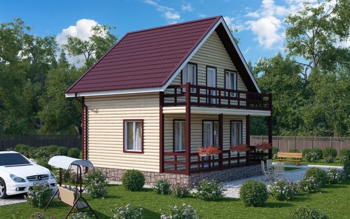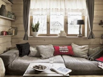 يحتوي الطابق العلوي على غرفة معيشة وشرفة فقط. ولكن من ناحية أخرى ، فإن هذه الغرف كبيرة جدًا ويمكنها تلبية الطلبات الأكثر جدية. يمكن أن تحتوي غرفة المعيشة والمطبخ المتجانسة أيضًا على وظيفة غرفة الطعام أو منطقة الاستجمام. هذا الترتيب للمباني مناسب جدًا لأولئك الذين يحبون العيش في منزل ريفي كبير مريح ؛ ستكون التكاليف صغيرة نسبيًا.