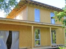 قد يبدو المنزل الريفي المصنوع من ألواح SIP بسيطًا جدًا. ولكن حتى في شكل غير مكتمل وغير مكتمل بعد ، يُنظر إليه جيدًا. يمتد السقف قليلاً إلى ما وراء محيط المبنى يضيف سحرًا فقط.