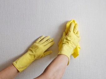 لمنع ظهور الخطوط على ورق الحائط بعد الغسيل ، يوصى بتنظيفها مسبقًا من الغبار المتراكم بقطعة قماش جافة أو مكنسة كهربائية. يمكن أيضًا إجراء التنظيف الجاف بدون تنظيف رطب إضافي. من أجل عدم الإخلال ببنية المادة ، يجب عدم تنظيف ورق الحائط أو غسله بمواد التنظيف الكاشطة والمواد الكيميائية القاسية..