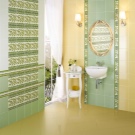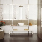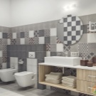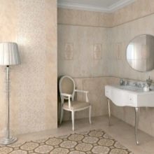 تم استخدام سلسلة Virgiliano لتزيين الحمام. يستنسخ البلاط بشكل مثالي نسيج الرخام الطبيعي ، وله أيضًا سطح لامع. البلاط مصنوع بألوان البيج والرمادي. أهم ما يميز الداخل هو الديكورات المزينة بنمط دمشقي من العصور الوسطى ، بالإضافة إلى الزخارف الزهرية. الثروة والرفاهية هي المزايا التي لا جدال فيها لهذا البلاط..