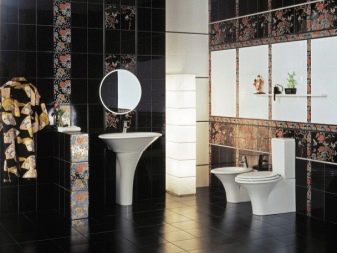 - غالبًا ما يفضل الكثير من الناس البلاط الأسود لإنشاء الأرضيات نظرًا لأناقتها وفخامتها. إذا كنت تستخدم السيراميك الأسود لتزيين الحمام ، فيجب أن تكون حذرًا ، لأنه لا يمكن أن يجعل الغرفة أصغر بصريًا فحسب ، بل تظهر أيضًا قطرات الماء والبقع والشقوق والمخالفات بوضوح شديد على هذا البلاط..