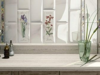 لا تقدم Kerama Marazzi بلاط السيراميك فحسب ، بل تقدم أيضًا مجموعة متنوعة من الديكورات والأواني الحجرية الخزفية. عادة ما يتم تصميم بلاط الخلفية لتزيين الجدران ، ولكن يمكن استخدامه للأرضيات. في هذه الحالة ، عليك أن تكون حذرًا جدًا معها. يجب تثبيته في غرف ذات حركة مرور منخفضة..
