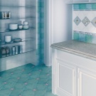 سلسلة ديرة ممثلة بالبلاط بألوان لطيفة وناعمة. يحاكي بلاط الخلفية للجدار سطح ورق الحائط تمامًا. إنه مزين بأزهار صغيرة تشكل زخرفة رائعة. يعمل بلاط الأرضيات على شكل أحادي اللون ويقلد الفسيفساء. يبدو هذا الترادف أنيقًا ومثيرًا للإعجاب ولا يُنسى..