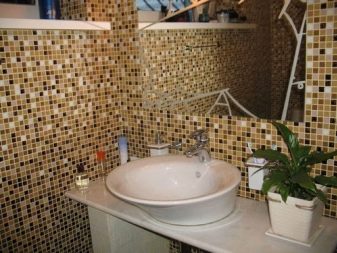 - بالنسبة للغرف الصغيرة ، يجدر اختيار السيراميك الصغير الحجم. تبدو فسيفساء الألوان الفاتحة بنمط صغير مشرقة وعصرية. سيؤدي هذا الاختيار إلى توسيع الغرفة بصريًا..