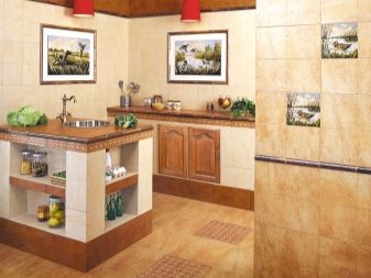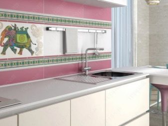 عند تزيين المطبخ ، غالبًا ما يتم استخدام المجموعات الساطعة ، حيث يتم تمثيل السيراميك في الخلفية بالبلاط الوردي والبرتقالي والأحمر والأرجواني..