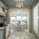 البلاط الأبيض حل عالمي. لإضفاء الأصالة والتفرد الداخليين ، يجب دمج البلاط الأبيض الثلجي مع الألوان الزاهية ، وإنشاء مجموعات مذهلة.