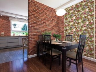 - غطاء من الطوب الفينيل. تباع في لفات ، تبدو مثل ورق الحائط. سوف يندمج تقليد هذا الجدار في أي تصميم حديث ويسمح لك باللعب بالألوان في الغرفة..