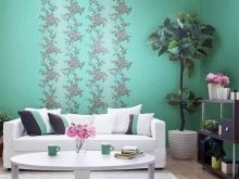 - ورق جدران من الفينيل “تيفاني”. يتميز هذا النوع من أغطية الجدران بحقيقة أنه يتم إنتاجه على شكل لفات عريضة. الميزة الثانية هي أنه يحتوي على مزيج من الهدوء والألوان الزاهية. على سبيل المثال ، البيج مع الفيروز أو الرمادي مع أرجواني.