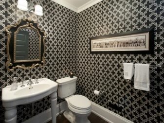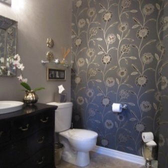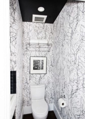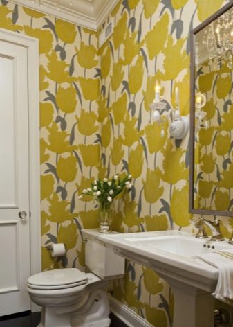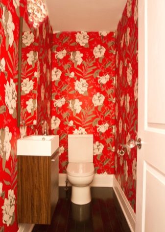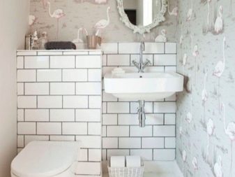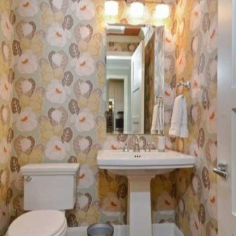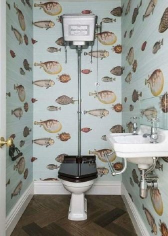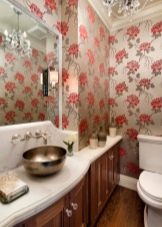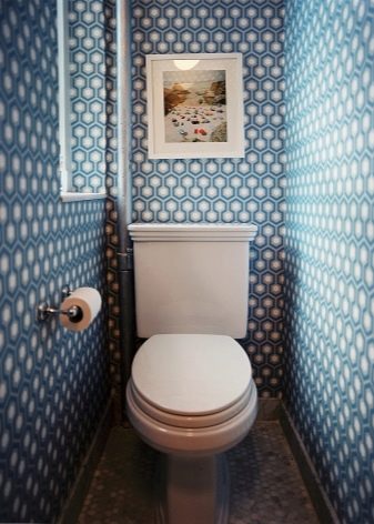 - يجب أن يتم الانتهاء من المرحاض بورق حائط مقاوم للرطوبة ، وإلا سيبدأ ببساطة في تقشير الجدران من الرطوبة. والمواد ، التي لا تخاف من الرطوبة ، ستخدم خدمة طويلة. في الوقت نفسه ، سيكون من الممكن عدم الابتعاد عن التنظيف الرطب في المرحاض ، وهو أمر ضروري حتى لا تظهر الفطريات والعفن على ورق الحائط..
