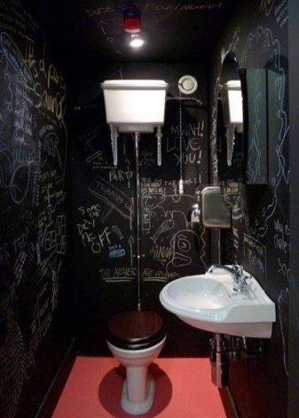 خلفيات المرحاض ليست شائعة. لا تعتقد أن خيار التشطيب هذا غير مناسب لغرفة ذات مساحة صغيرة. بعد كل شيء ، ستسمح لك مجموعة متنوعة من المواد والأنسجة والظلال باختيار خيار مثير للاهتمام يتناسب مع التصميم العام للشقة..