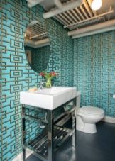 - من المهم اختيار الملمس المناسب وظل ورق الحائط بحيث يبدو متناغمًا في الحمام. تقدم المتاجر الآن عددًا كبيرًا من الألوان التي ستتيح لك إنشاء تصميم مثير للاهتمام وأصلي في الحمام..