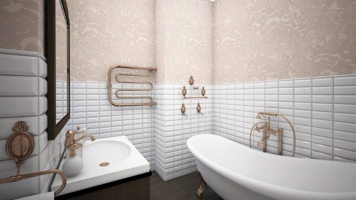 خيار مثير للاهتمام للجمع بين البلاط وورق الحائط بظلال فاتحة.