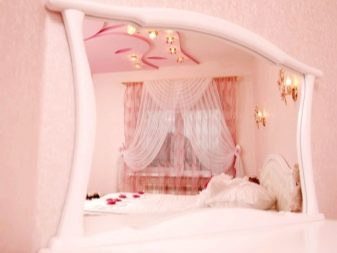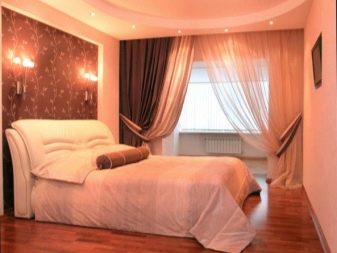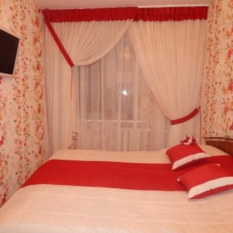 كما هو الحال في الحضانة ، يمكنك في غرفة النوم تنظيم مظلة مصنوعة من نفس القماش المستخدم في صناعة الستائر..