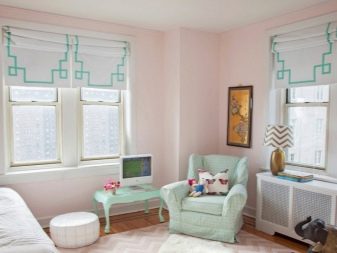 في الحالة الثانية ، تكون عملية اختيار العناصر الزخرفية ، بما في ذلك الستائر ، أكثر تعقيدًا. يمكن أن يكون استخدام ورق الحائط الملون جنبًا إلى جنب مع الزهور المطلية أو أنماط الستائر مزيجًا خطيرًا من شأنه ببساطة أن يثقل كاهل الداخل بعناصر غير ضرورية ويساهم في خلق بيئة غير مريحة وغير جذابة ، بعيدة كل البعد عن معايير الأسلوب الحديث. من المهم أن نفهم ذلك الجدران الوردية هي بالفعل لهجة لونية خطيرة, وبوجود نسيج وزخرفة ، يتحولون إلى أساس للداخل بأكمله ، حيث لا يوجد مكان آخر للدوافع الملونة ، بما في ذلك الستائر.