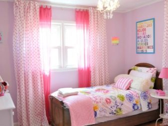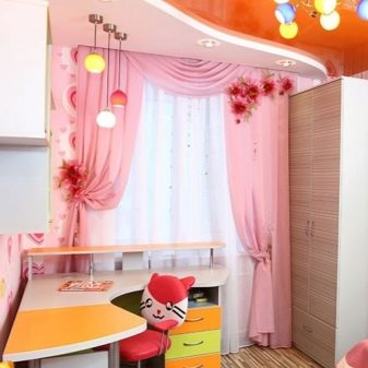 هناك العديد من الطرق لاستخدام الستائر الشفافة في غرفة الفتاة ، بما في ذلك ستائر فوق السرير. ينصح المصممون باختياره لمواد الستائر ، بحيث يتردد صدى جميع المكونات الزخرفية مع بعضها البعض ، مما يخلق ترادفًا فريدًا.