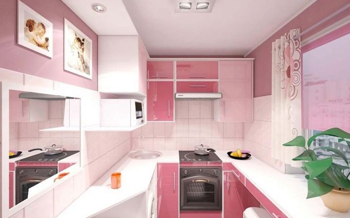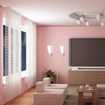 إنها تعطي إضاءة تضيع في الغرف الصغيرة بسبب عدم وجود مساحة كبيرة. في حالة وجود جدران وردية ، يتم تحسين هذا التأثير فقط ، وإذا كان للخلفية نمط مشرق ، فسيتم إلى حد ما تنعيم السطوع ووجود اللون المشبع..