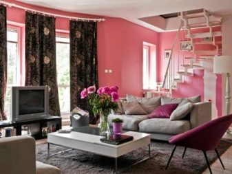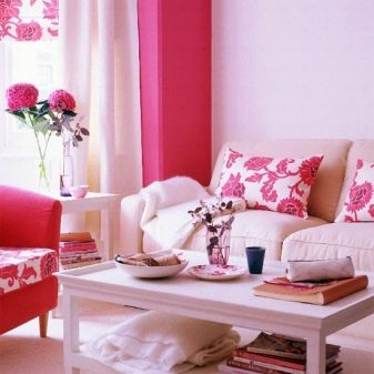 من المهم أن نفهم أن اللون الوردي هو ظل نشط إلى حد ما ، وأن الكمية الزائدة منه في الغرفة غير مقبولة ببساطة..