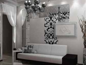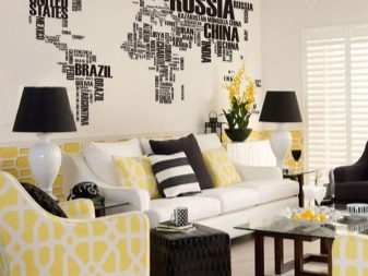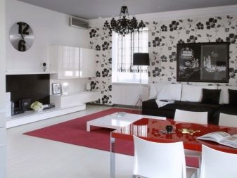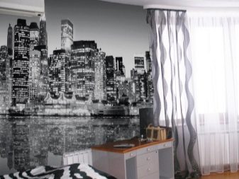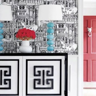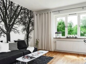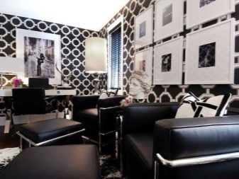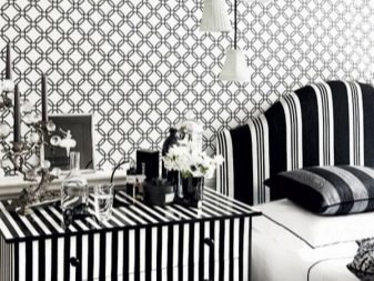 ستساعد إطارات الصور ذات الألوان المتباينة (أبيض على أسود وأسود على أبيض) والستائر والأشكال المختلفة على إحياء الجدران بورق حائط عادي. نظرًا لأن ورق الحائط بالأبيض والأسود لا يتخلص من الغرف فحسب ، بل يتخلص أيضًا من الشقق بأسلوب واحد (أو على الأقل قريبة من بعضها البعض) للتزيين ، فيمكن استخدام أجهزة الإضاءة وأرفف الكتب وغيرها من الملحقات لنفس الغرض..
