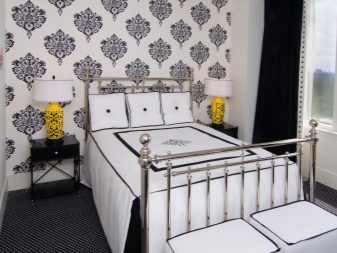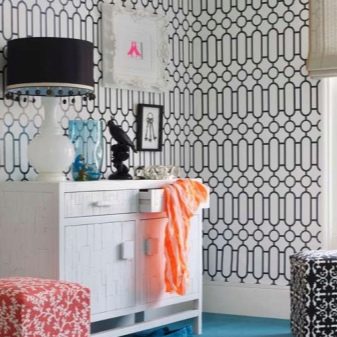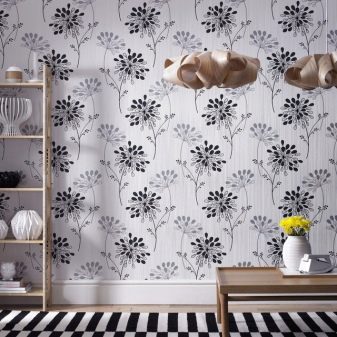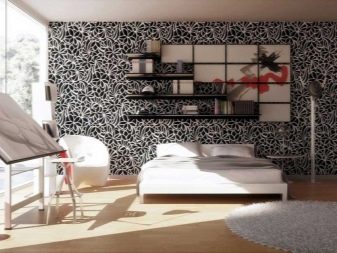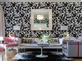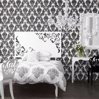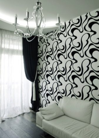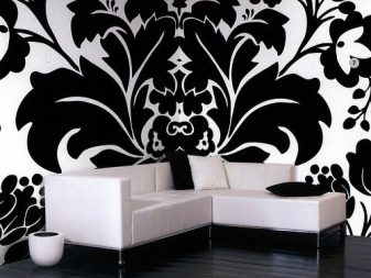 ستعمل الجدران البيضاء ذات النمط الأسود على تكبير مساحة غرفة صغيرة بصريًا ، مما يمنحها مظهرًا راقيًا ومتقشفًا. حجم النموذج وشكله لهما تأثير مباشر على تصور الشخص للمساحة: فوفرة التفاصيل ستخلق انطباعًا قمعيًا غير سار ، وقليل منها سيجعل النمط غير مناسب ومضحك. للسبب نفسه ، يجب ألا تلصق جميع الجدران في الغرفة بورق حائط أبيض بنمط أسود كبير ، ولكن يجب أن تخفف الرسومات بمناطق أكثر هدوءًا أحادية اللون..