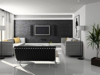تُفضل الخلفيات السوداء للتصاميم البسيطة والعرقية والكلاسيكية وذات التقنية العالية. لا تقبل البساطة التفاصيل الصغيرة: يجب أن تحتوي الخلفية على أبسط نمط ممكن ، ويجب ألا يتم تحميل الغرفة بعناصر داخلية غير ضرورية ، ويبدو الأثاث في هذه الغرف دائمًا بسيطًا جدًا وحتى زاهدًا إلى حد ما.