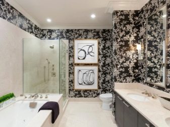 نادرًا ما يتم استخدام ورق الحائط الأسود النقي في الداخل – فقط إذا كانت هذه هي فكرة التصميم الأصلية. في كثير من الأحيان ، لتجنب الانطباع القمعي والشعور بالحداد ، يتم تخفيف ورق الحائط الأسود بمجموعة متنوعة من الأنماط: لامع أو غير لامع أو فضي. إنهم لا يبرزون من الخلفية المظلمة العامة ، لكن في نفس الوقت لا يسمحون له بجعل الغرفة قاتمة للغاية..