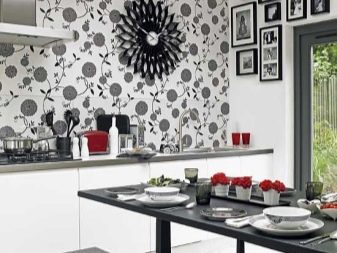 أيضًا ، غالبًا ما يتم اختيار الألوان أحادية اللون لتزيين المطبخ. عادةً ما يتم اختيار اللون الأبيض باعتباره اللون السائد ، وتتميز منطقة تناول الطعام بمناطق يغلب عليها اللون الأسود. ستبدو جميع أنواع أنماط النباتات جيدة في المطبخ ، وتعتبر المنتجات ذات الأشكال الهندسية خيارًا أساسيًا للمطابخ التي تنجذب داخلها نحو الأنماط حديثة وعالية التقنية.
