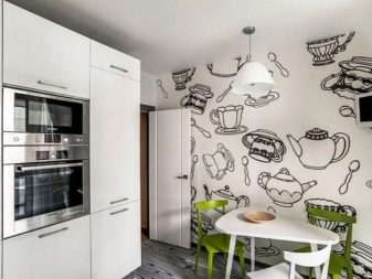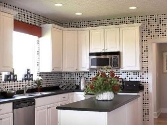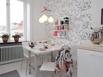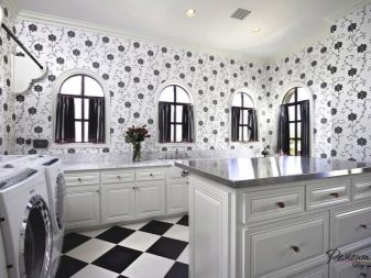 بدلاً من ذلك ، يمكنك استخدام ورق الحائط القابل للغسل. بالمناسبة ، يتم استخدام نوع مماثل من ورق الحائط في المطابخ ، وغالبًا ما يكون لونها الرئيسي أبيض. تم إنشاء هذه الخلفيات خصيصًا لمثل هذه الأماكن ، فهي تطرد جميع أنواع الشحوم والغبار. ولكن على الرغم من ذلك ، سيتعين على المالك بذل الكثير من الجهود للحفاظ على النظافة الأصلية للجدران..