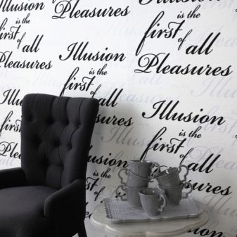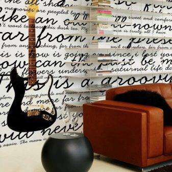 خيار غير عادي ، خاصة بين الشباب. غالبًا ما تستخدم النقوش في تصميم المباني التجارية مثل المقاهي المختلفة والمطاعم العامة ، ولكن يمكن أن تجد مثل هذه الزخرفة مكانها أيضًا في غرفة المعيشة..