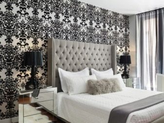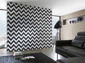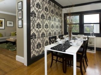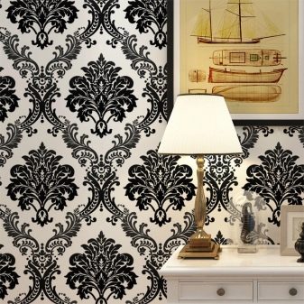 غالبًا في الديكور الداخلي ، يتم لصق أحد الجدران بورق حائط أسود بنمط للتأكيد على موضعه الخاص (على سبيل المثال ، الجدار خلف التلفزيون أو اللوح الأمامي). يمكن استخدام أي زخرفة أو رسم كنمط. يجدر النظر في حقيقة ذلك ستظهر الصور والرسومات الكبيرة بالقرب من العارض.