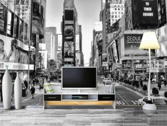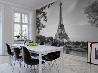 يمكن للمالكين الجريئين تجربة صور الحيوانات أو الطيور أو الخيول أو النمور أو الأسود. سيعطي هذا ديناميكية الغرفة ، وإحساسًا بحركة تدفق الحياة. خيار المناظر الطبيعية الحضرية لا يقل إثارة للاهتمام: يمكن أن يتحول مطبخ الشقة العادية لفترة وجيزة إلى شارع هادئ في برلين ، حيث يمكنك الجلوس في مقهى وتناول فنجان من القهوة الصباحية.