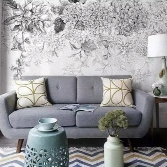 لتجنب التأثير الجذري غير الضروري للون أو لآخر على النفس ، يمكنك استخدام تفاصيل مختلفة من ظلال رمادية أو ألوان الباستيل في الداخل. يمكن أن تكون إما عناصر من الأنماط أو الزخارف على ورق الحائط نفسه ، وكذلك الأثاث والمنسوجات..
