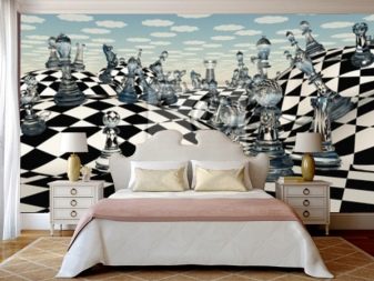 خيار مثير للاهتمام لغرف أكثر صرامة ، خاصةً في الأسلوب حديثة أو عالية التقنية, سيكون زخرفة الجدران بأسلوب رقعة الشطرنج. سيتم دمج العناصر المعدنية والمرايا في الداخل بشكل رائع مع مخطط الألوان العام وستعطي الغرفة نكهة فريدة..