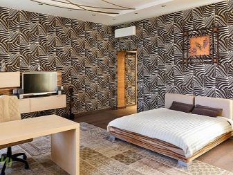 سوف يتناسب غطاء الجدران بزخارف مجردة مع غرفة بها أثاث أبيض. عدة وسائد ، مصنوعة بأسلوب مشابه لورق الحائط ، ستخلق تركيبة واحدة للغرفة. ستبدو أنماط مظهر “الفهد” مضحكة ، ولكن يجب استخدامها بحذر شديد حتى لا تبدو الجدران خرقاء ولا طعم لها. من الأفضل استخدام مثل هذه المطبوعات كإدراج., مفضلين خلفية هادئة أحادية اللون.