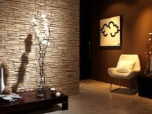 ورق الحائط المطلي بالحجر الرملي أو الكوارتز يستجيب بشدة للإضاءة الخلفية. ينعكس الضوء على جميع الجوانب بشكل فعال في انحناءات اللوحة الحجرية. هناك حاجة إلى الإضاءة الخلفية بشكل خاص حيث يجب إعطاء التصميم الداخلي أناقة خاصة ، حيث سينعكس الضوء ليس فقط على حواف الحجر ، ولكن أيضًا على التذهيب لإطارات الصور ، وعناصر ديكور الأثاث ، والمعلقات الكريستالية للمصابيح.